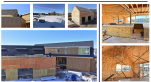 Interior framing also continues throughout the main building, supporting the next phases of construction