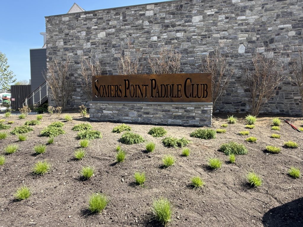 Another exciting week of progress at Somers Point Paddle Club! Tile installation for the waterfalls in both the kids zone pool and hot tub is now complete, bringing these standout features to life. Work also moved ahead on the shaded turf lounge area near the kids pool, where structural steel was installed to create the overhead covering that will provide shade for members. Out front, our club sign has officially been installed—an exciting visual milestone as the property continues to come together. To top it off, landscaping is well underway, with plants and trees thoughtfully placed throughout the club grounds. We’re getting closer every day—stay tuned for more updates!
